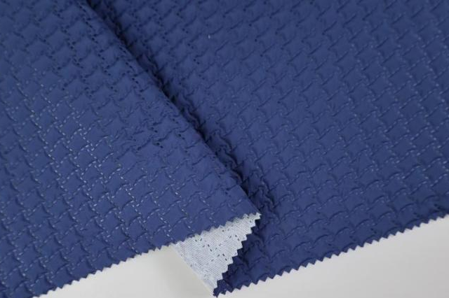 產(chǎn)品原料上應(yīng)用的是多孔聚酯纖維加彈絲,面料的密度是性價比較高的310T;手感柔軟細(xì)膩,具有絨感;后續(xù)做壓皺工藝,菱形幾何花型與輕薄填充物之間相呼應(yīng),凹凸不平的壓皺風(fēng)格突出面料的立體氛圍,豐富人們的視覺體驗,為單調(diào)的防寒面料上增添幾分趣味與文藝。
