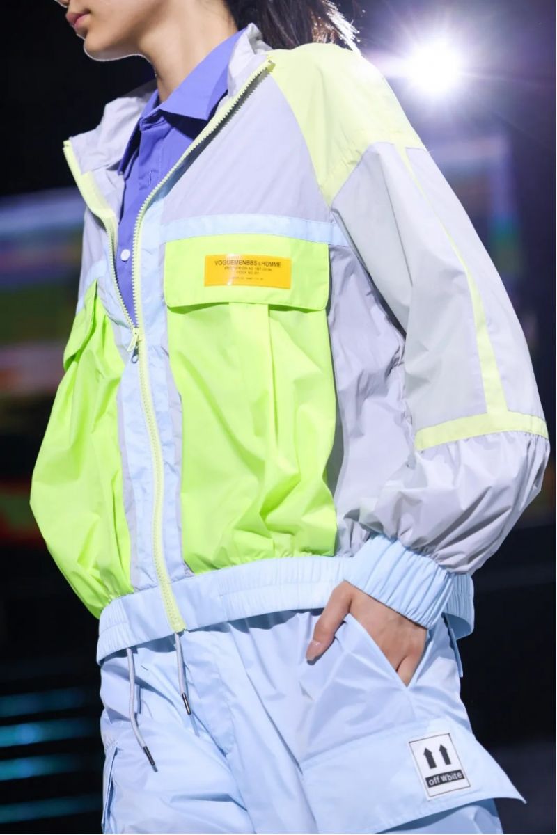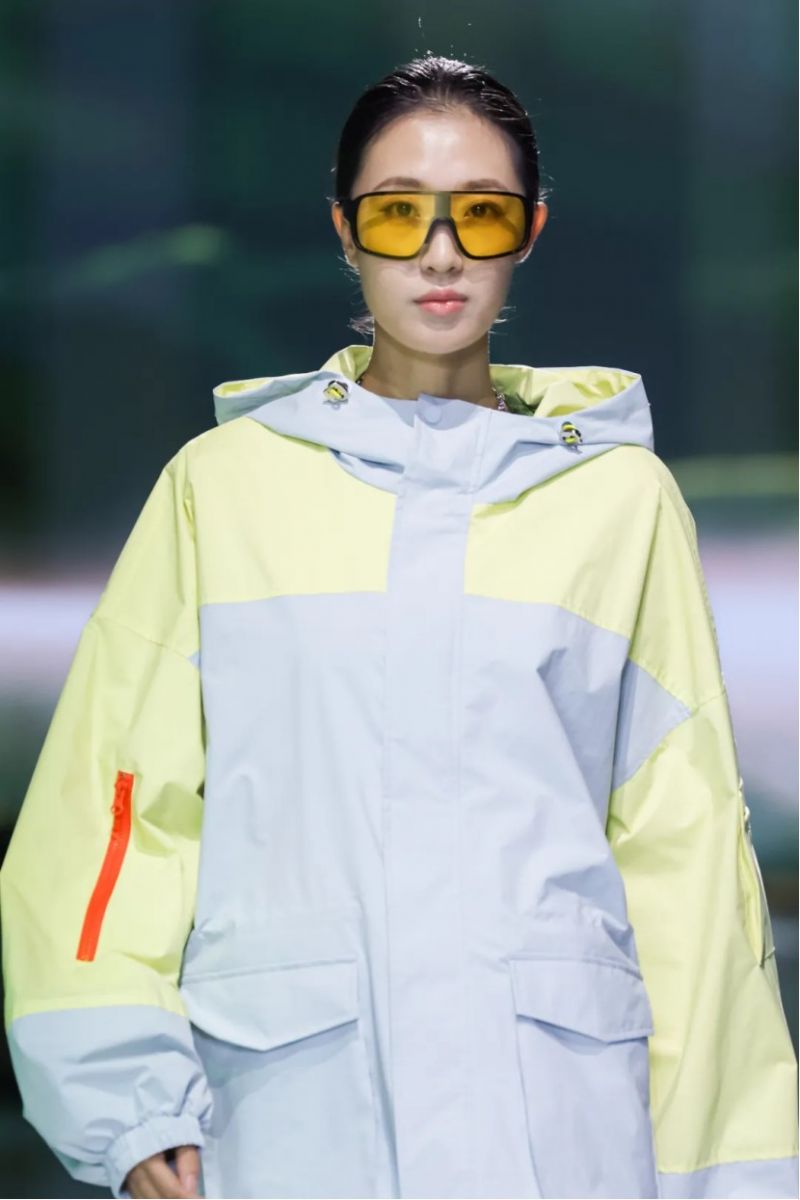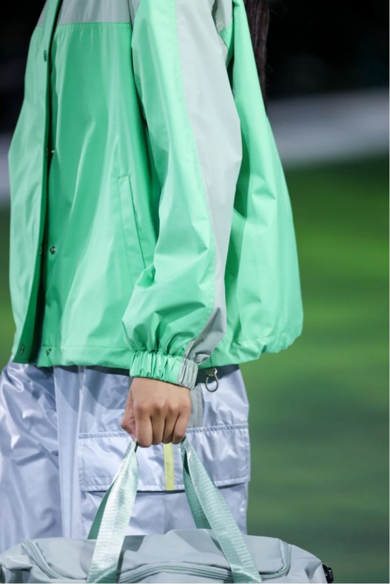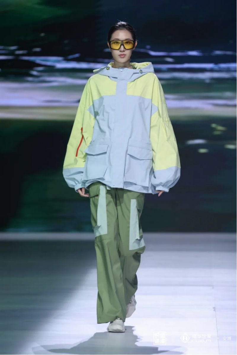 本系列設(shè)計(jì)色彩取之于自然萬(wàn)物中的天、地、水、植,例如嫩芽黃、萊姆綠、香水藍(lán)等等。同時(shí)在面料上的選擇也考慮到了不同溫度環(huán)境下的穿著體驗(yàn),包括不同克重的錦綸、滌綸面料,同時(shí)考慮到了環(huán)保因素,一部分漁網(wǎng)回收的錦綸同樣運(yùn)用到了此系列中。通過(guò)色彩與面料的巧妙搭配,讓本系列整體風(fēng)格顯得明快自然、舒適閑逸,通勤與戶外的有機(jī)結(jié)合,也讓此類輕戶外風(fēng)格更能得到當(dāng)下消費(fèi)者的青睞。